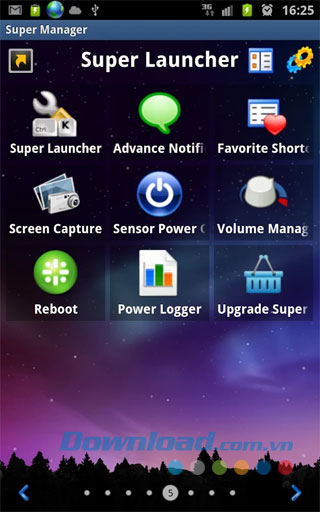 - Super Launcher: Thông tin thiết bị, chạy nhanh chóng, chuyển mạng,...
